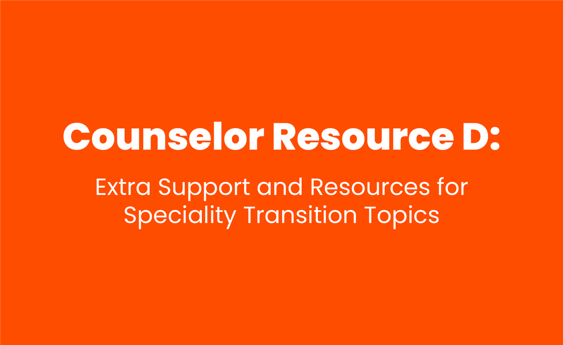 Counselor Resource D: Extra Support and Resources for Speciality Transition Topics
