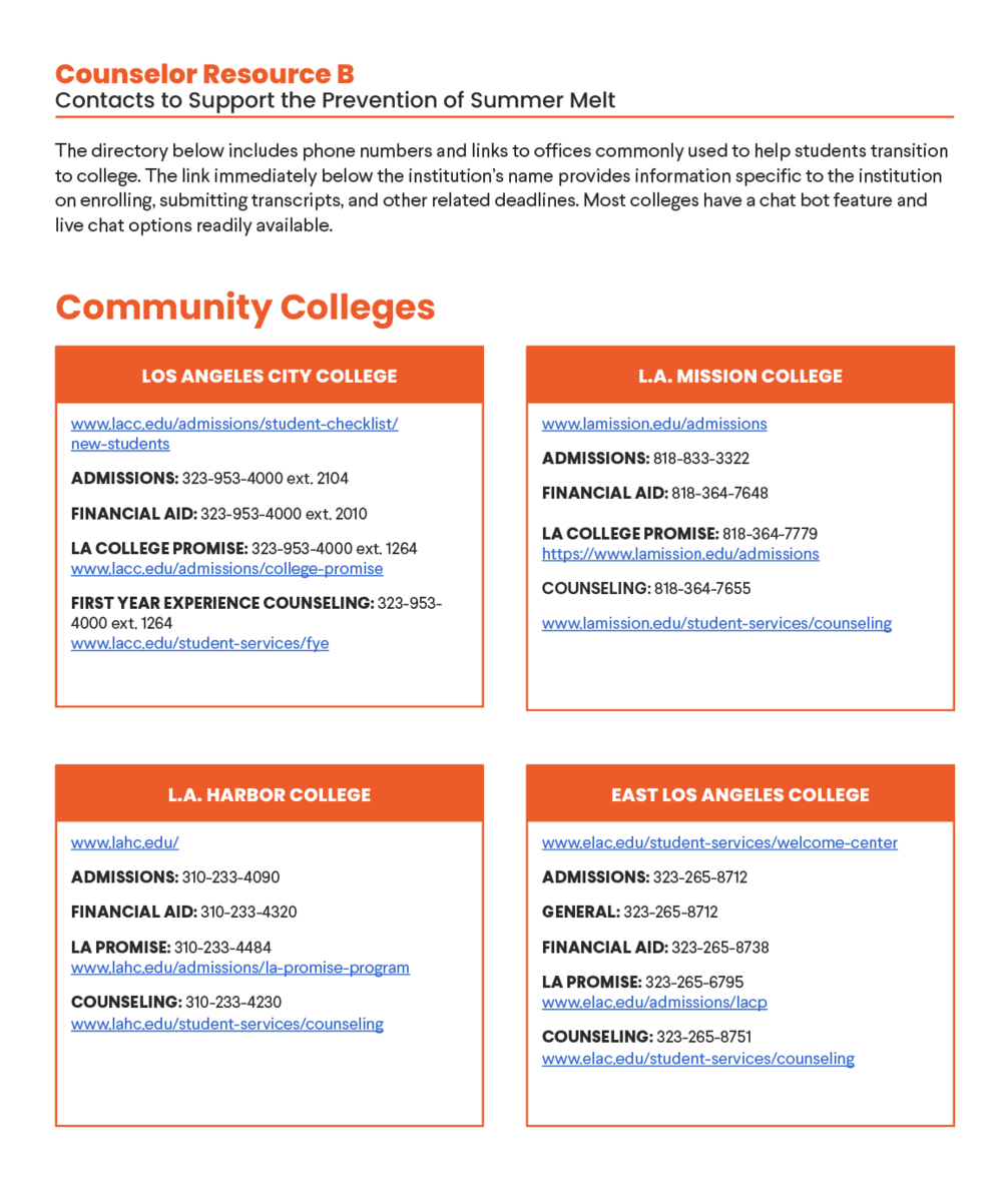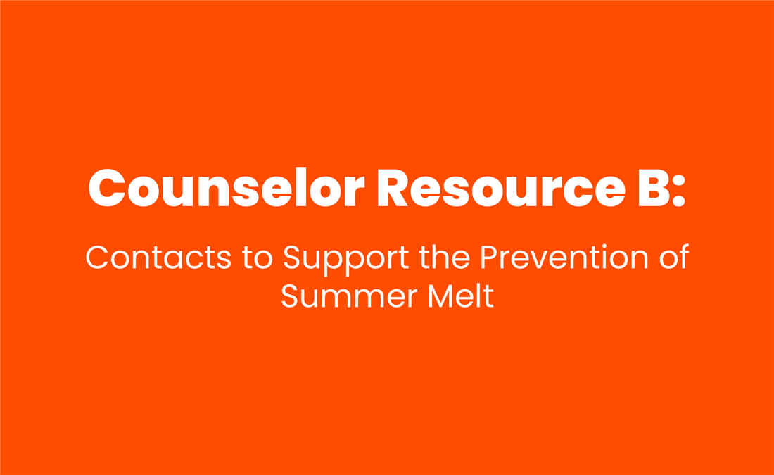 Counselor Resource B: Contacts to Support the Prevention of Summer Melt