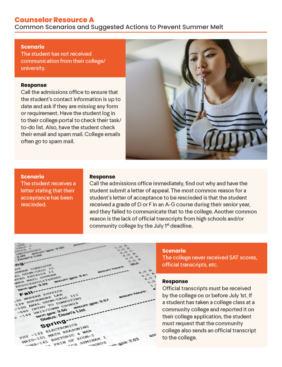 Counselor Resource A: Common Scenarios and Suggested Actions to Prevent Summer Melt